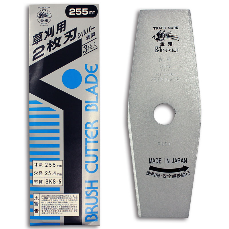 刈払機用回転刈刃 金雉 2枚刃 シルバー仕上 外径255mm×厚み1.6mm (3枚入セット) 取寄品 三陽金属 0403