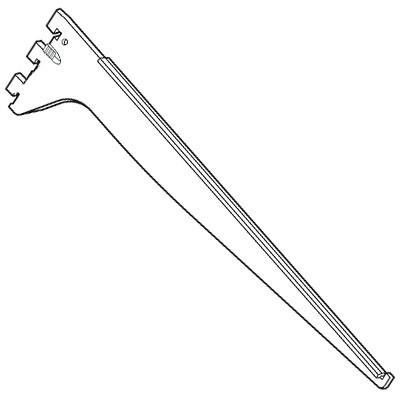 スリット穴掛け式棚等設置システムの、ガラス棚専用腕金具(先端前ズレ防止構造付き)