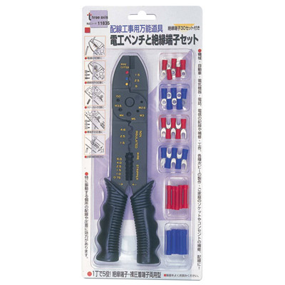 電工ペンチと絶縁端子セット 絶縁端子30セット付 イチネンMTM ミツトモ 11835