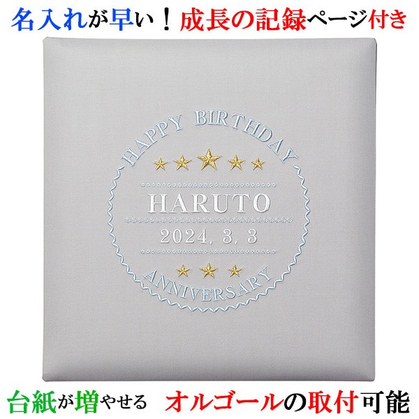 アルバム 名入れ ベビー 名入れアルバム 名前入りアルバム フォトアルバム 出産祝い 刺繍で赤ちゃんの名前入り 台紙が増やせる オルゴール付きも可 【311-055】8スター サックス