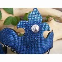 素材はペーパークラフトでできています。表面素材はメタリックカラーの特殊な布製マテリアルで作られています。色により若干生地も異なり、光の反射も変わります。またラインストーンでアイラインをデコレーションするカスタムはゴージャス感が増します。モダン的なデザインで一目見た途端気に入ってしまいました。目立ち度十分です。