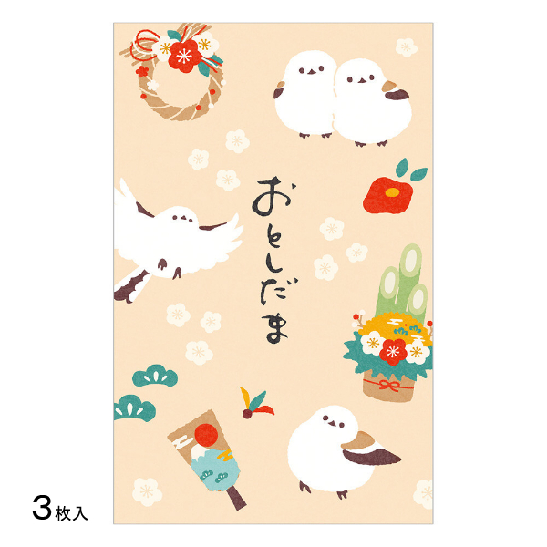 お年玉袋 賀正 シマエナガ 3枚入 / 和柄 可愛い ポチ袋 お正月 エヌビー社