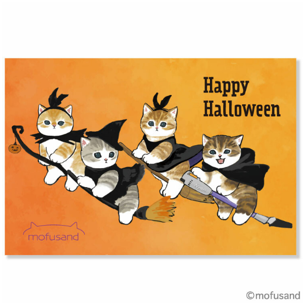mofusand ハロウィン ポストカード HWPX-142 / 魔女 ほうき モフサンド 猫 ネコ ぢゅの