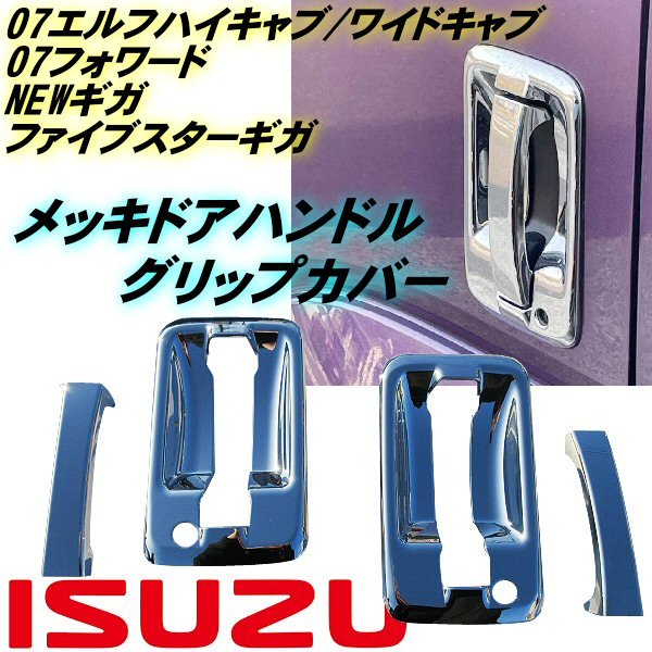 いすゞ 07エルフ ハイキャブ ワイド 07フォワード ファイブスターギガ NEWギガ メッキ ドア ハンドル グリップ カバー 2t 4t 大型 左右