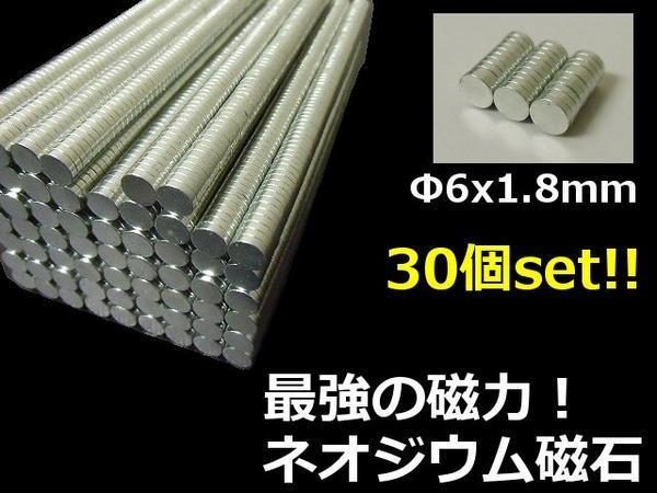 メール便可 売り切り 最強磁力 30個 丸型 ネオジウム磁石 Φ6×1.8 レアアース 希少鉱石 強力 マグネット