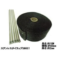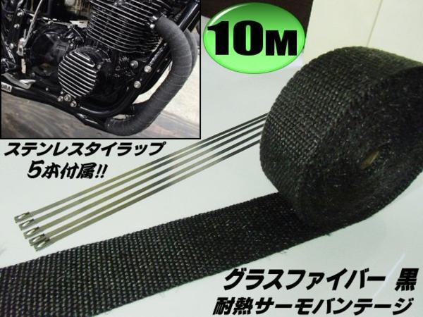 耐熱布 断熱 グラスファイバー サーモバンテージ 黒 ブラック 10M マフラー テープ エキマニ 排気管 エンジン バイク 車 バンド付