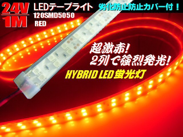 24V 1M 劣化防止 カバー付 2列 LED テープライト 蛍光灯 LEDライト 赤 レッド トラック 船舶 照明 デイライト アンドン メール便可