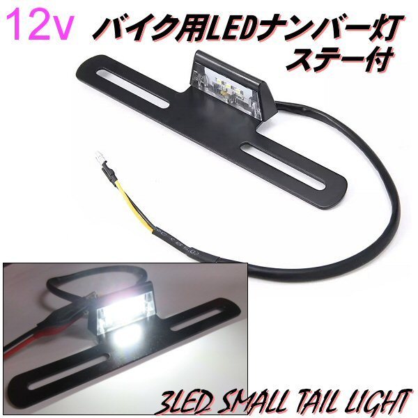 新型 バイク LED ナンバー灯 ナンバープレート ステー付 マウント 3LED 一体型 ライセンス灯 フェンダーレス 白 ホワイト 12V