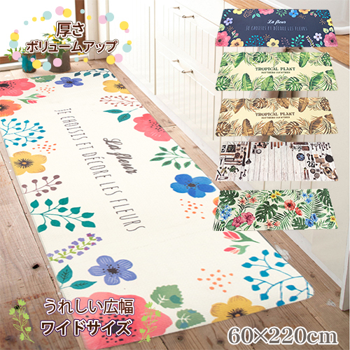 拭ける 厚手 キッチンマット 60×220 撥水 防汚 台所 マット ハワイアン モンステラ 塩化ビニール 広幅 在庫処分 なくなり次第終了