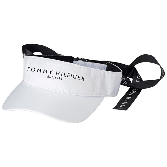 トミー ヒルフィガー ゴルフ レディース ロゴプリント リボン付き サンバイザー THMB208F 00 ホワイト ゴルフウェア 2022年モデル ゴルフ