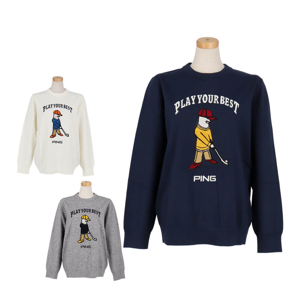 PING ピンゴルフ レディース Mr.PING ジャカード 長袖 クルーネック ニット プルオーバー 622-5270901 2025年モデル特長