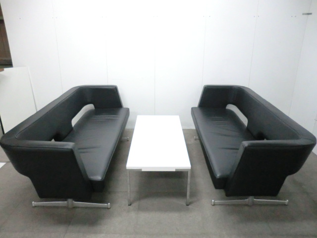 応接3点セット / ブラック / 【中古】 幅:2280 奥行:1810 高さ:680 カラー:ブラック