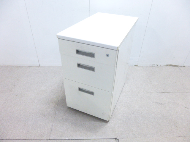 ホワイト/脇机3段/【中古】 幅:400 奥行:700 高さ:700 カラー:ホワイト