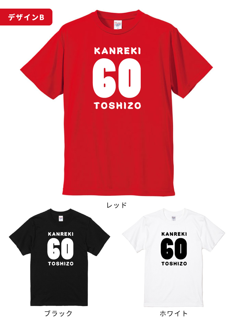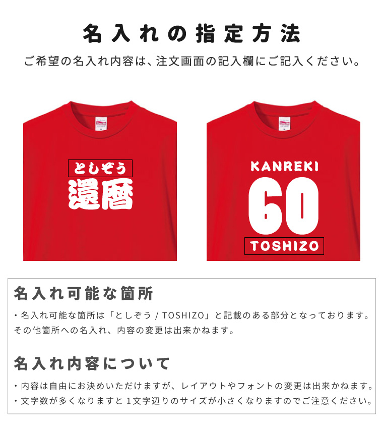 名入れ内容を入力するだけの簡単オーダーで、世界に1枚の還暦祝いTシャツをお作りいただけます。