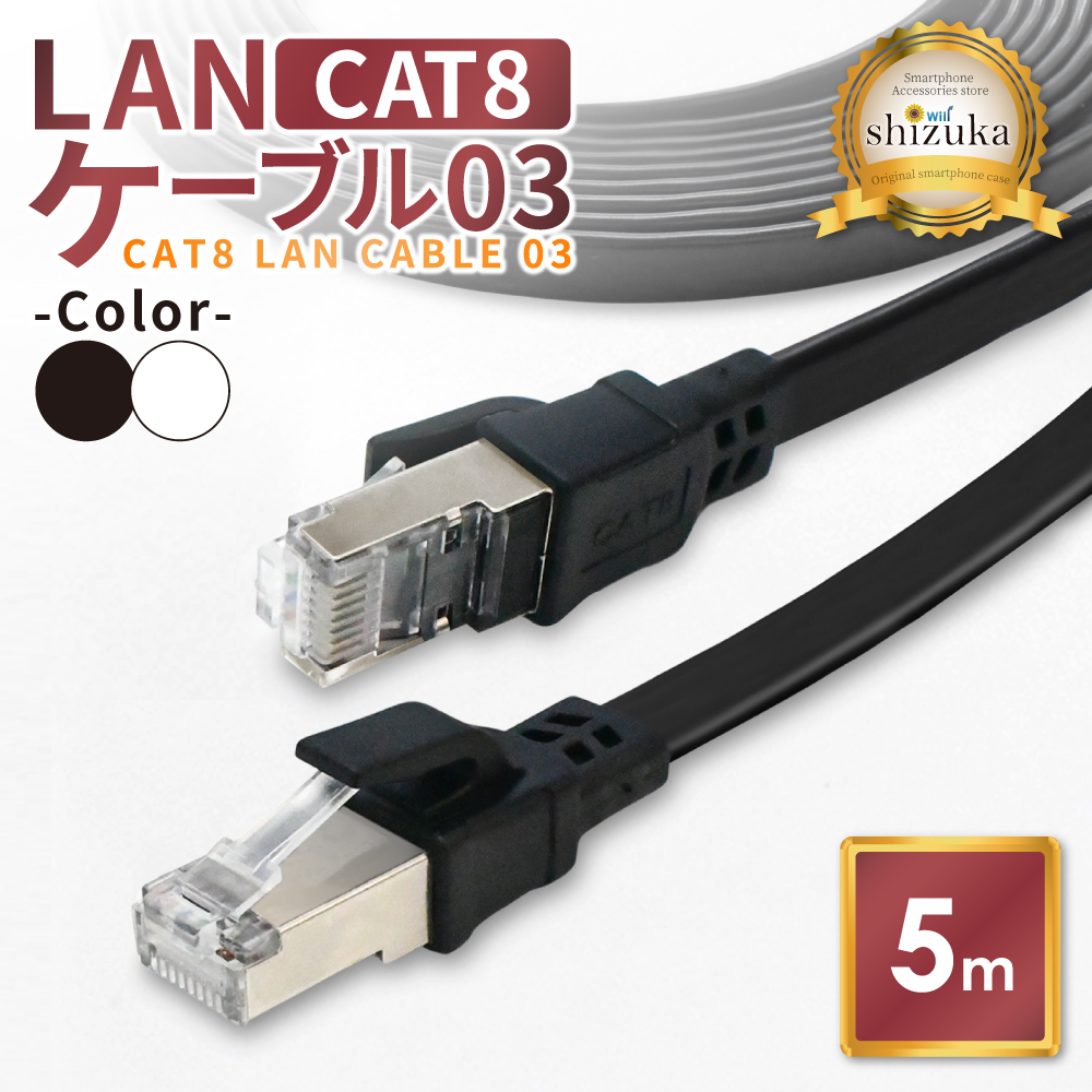 LANケーブル Cat8 40Gbps 5m 高速 フラットタイプ カテゴリー8 ランケーブル イーサネットケーブル 企業用 lanケーブル 家庭用 ケーブル シズカウィル