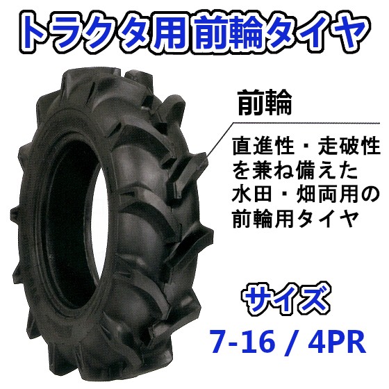 トラクター用 前輪タイヤ + チューブ セット ST 7-16 HF 4PR バルブ TR15 バイアスタイヤ 水田 畑 両用