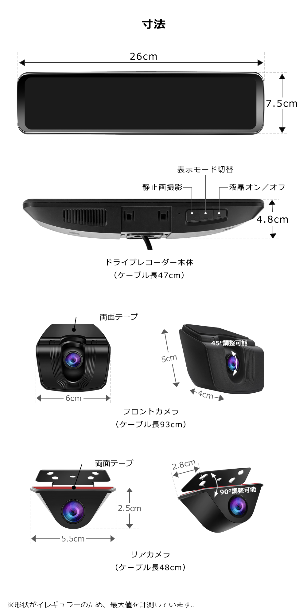 ドライブレコーダー 前後 ミラー型 トップウォール構造 デジタルズーム ミラー型...