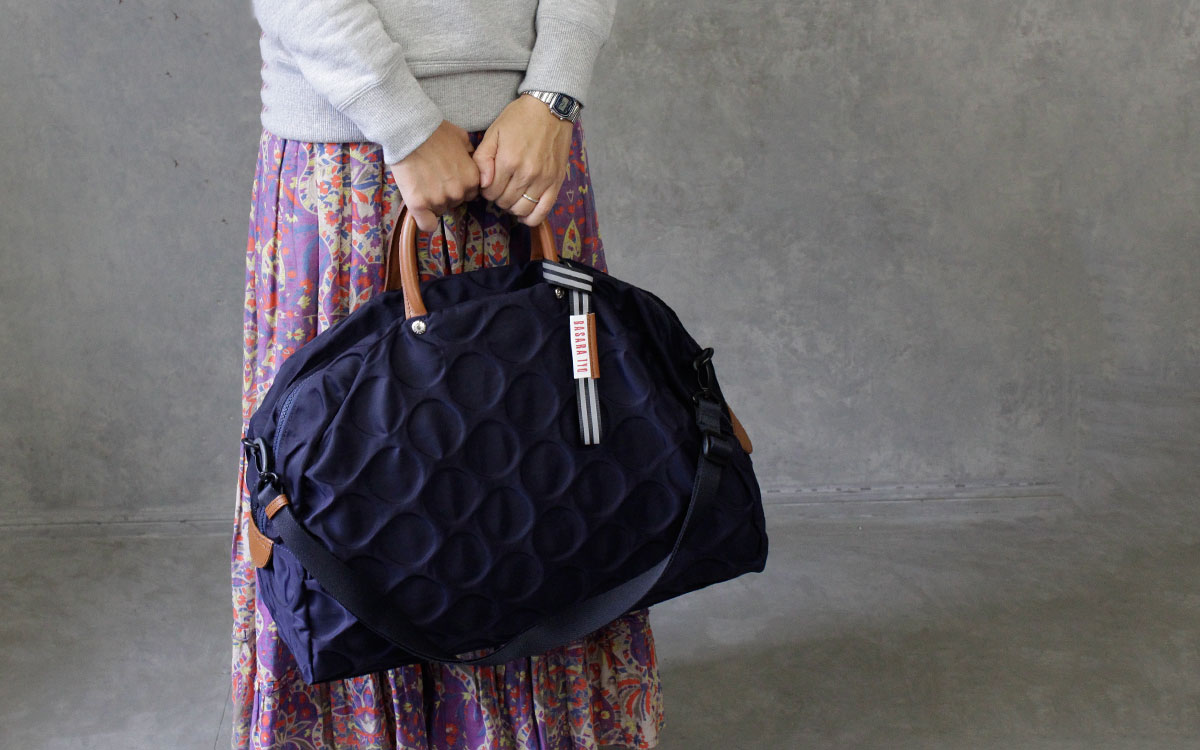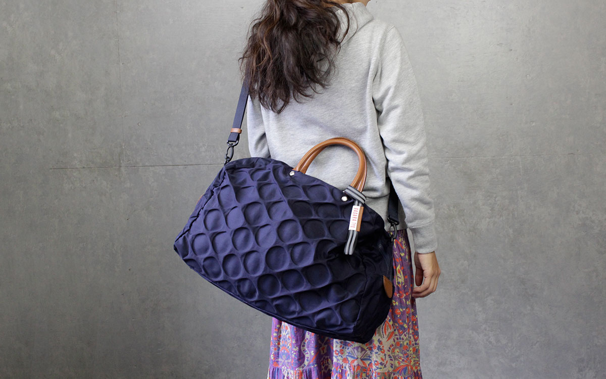 ナイロンにディボック加工という凸凹のドットの型押しを施し、スポーティーでありながら優しいフォルムに仕上げました。サラッとした柔らかな素材なので着用した際も身体に寄り添うようになじみストレスがありません。