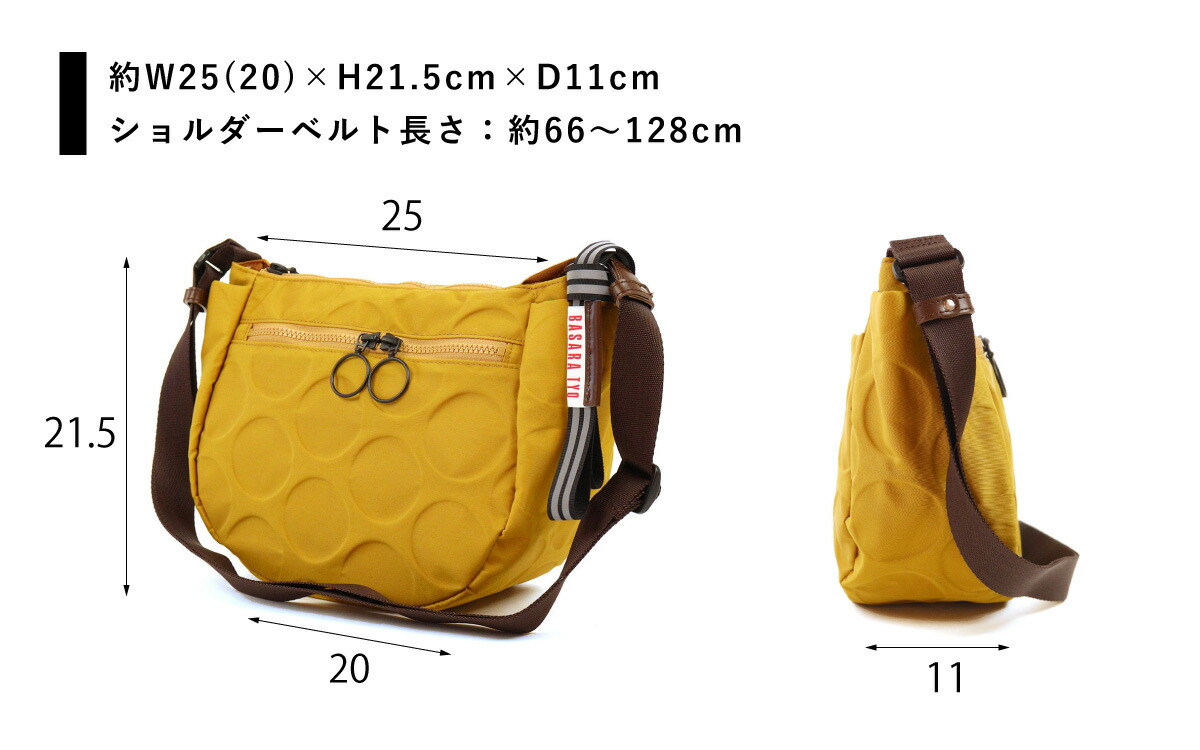 | □サイズ | 約W25(20)×H21.5cm×D11cm ショルダー長さ:約66〜128cm |