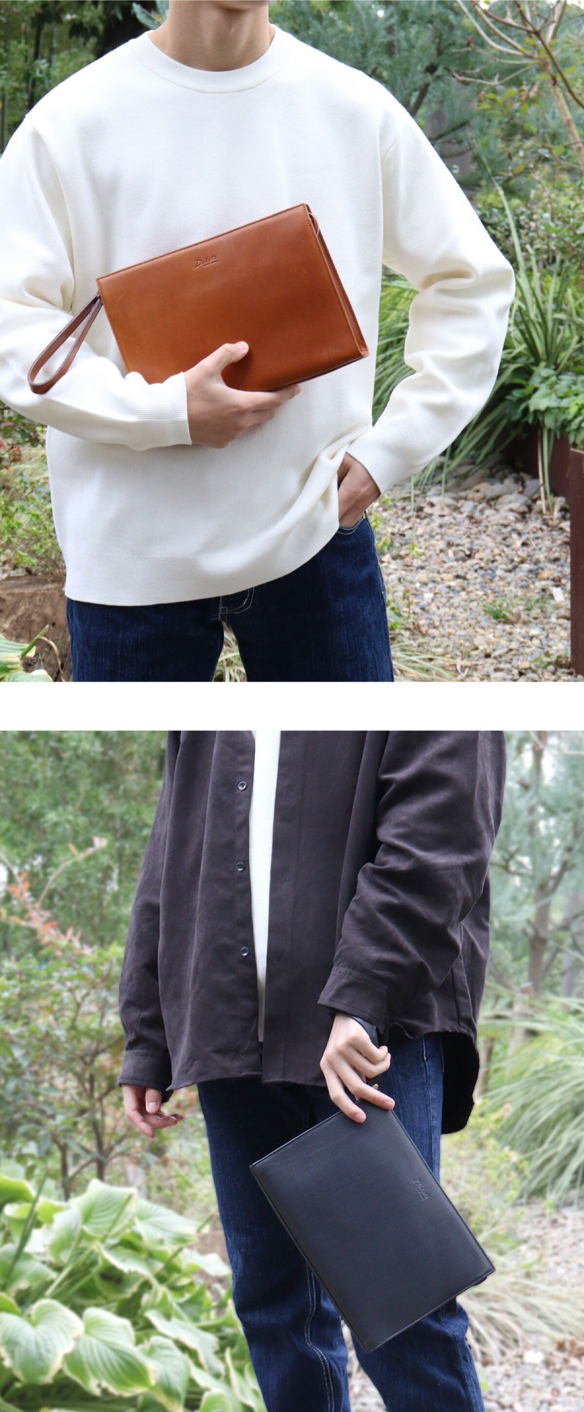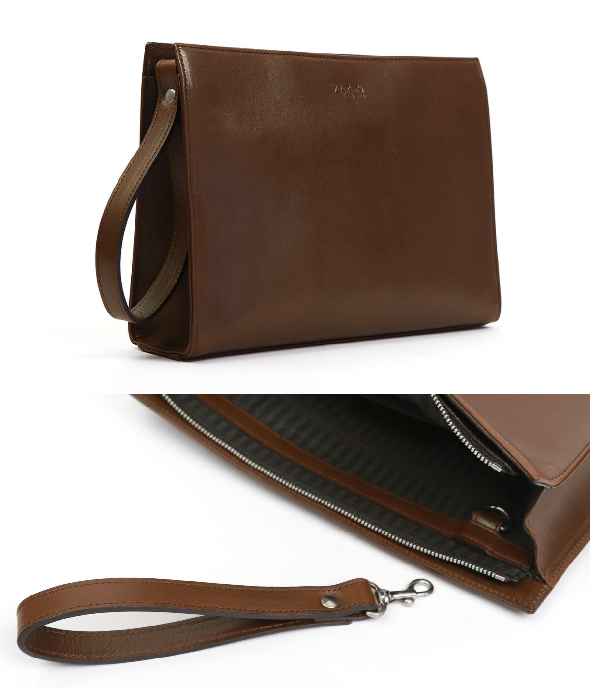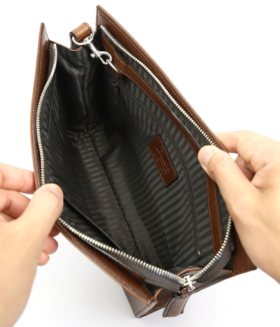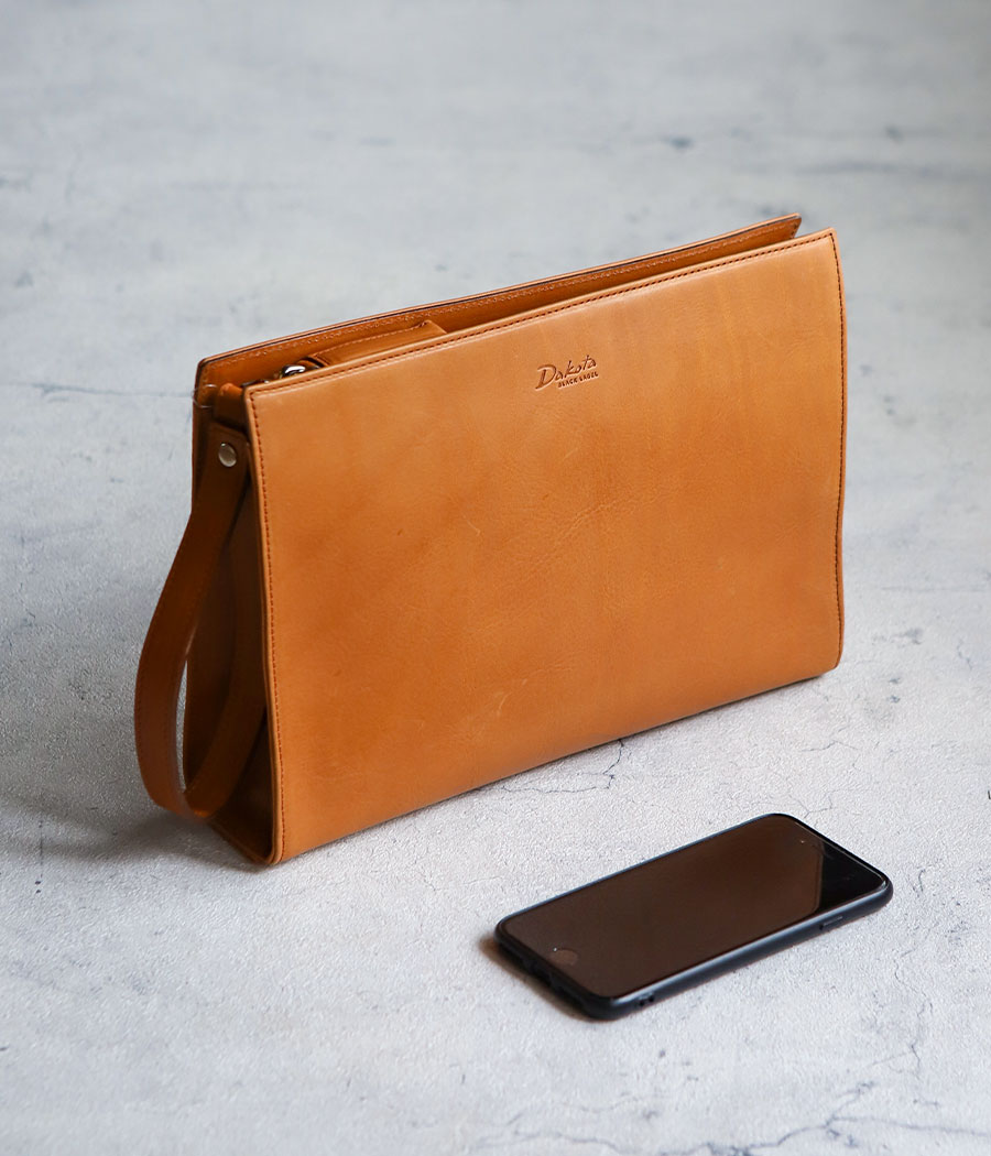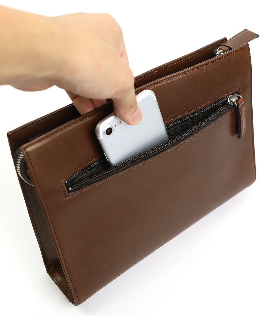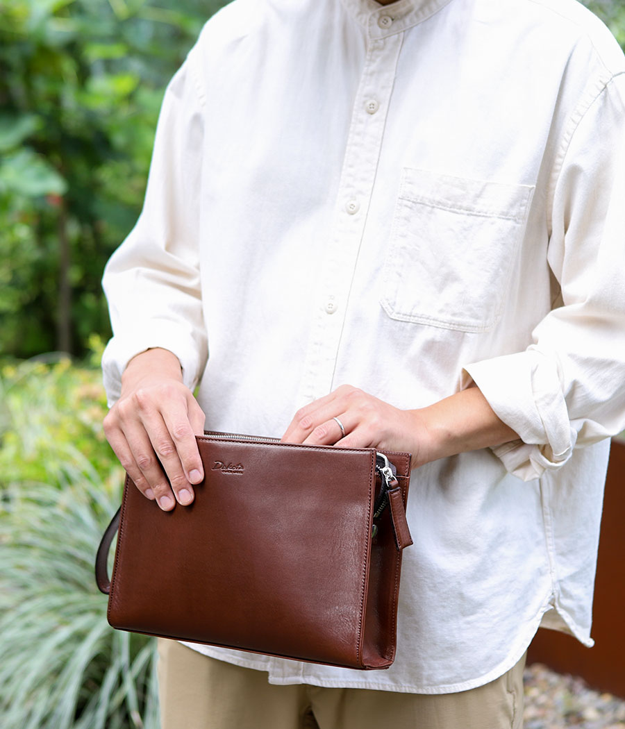 艶のある本革を贅沢に使用したセカンドバッグ。