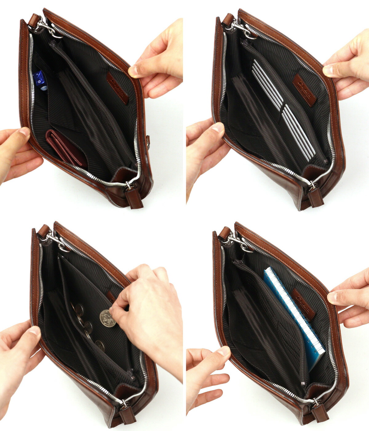 艶のある本革を贅沢に使用したセカンドバッグ。
