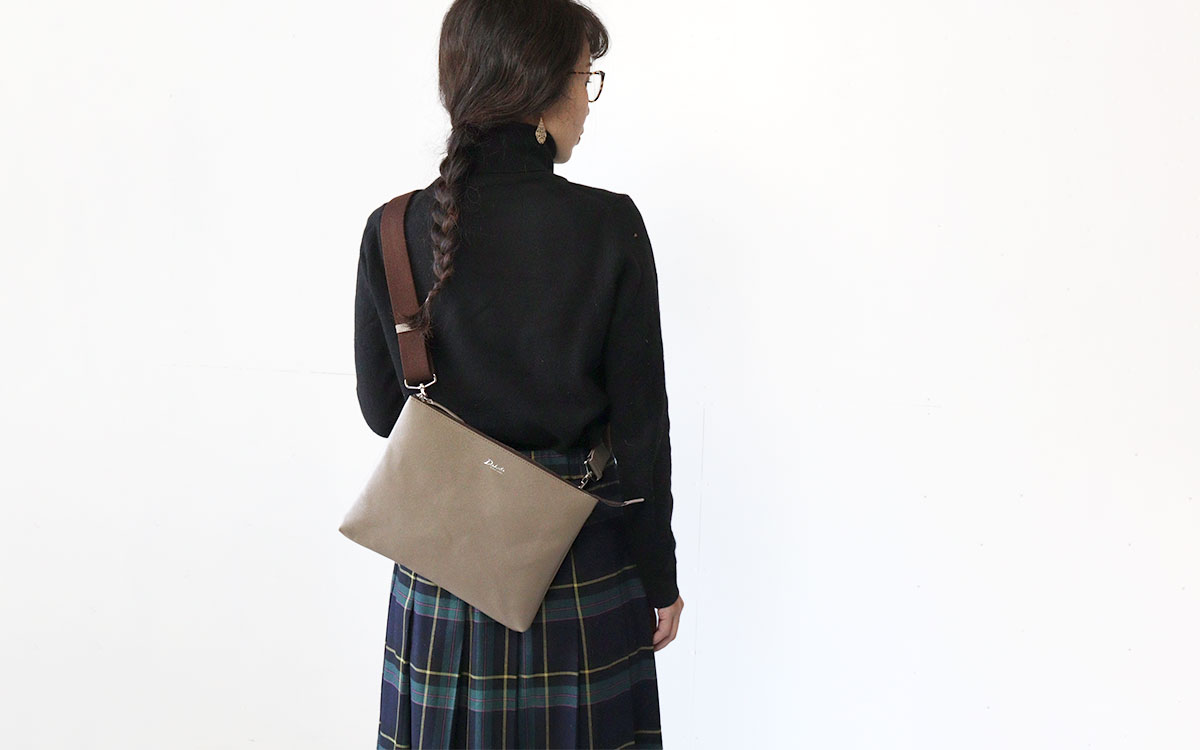 ショルダーベルトで斜め掛け&肩掛けや、ベルトを取り外してクラッチスタイルで使い分けるなど、あらゆるシーンに対応します。ショルダーベルトは幅4cmで、長さ70〜120cmの間で調整可能。