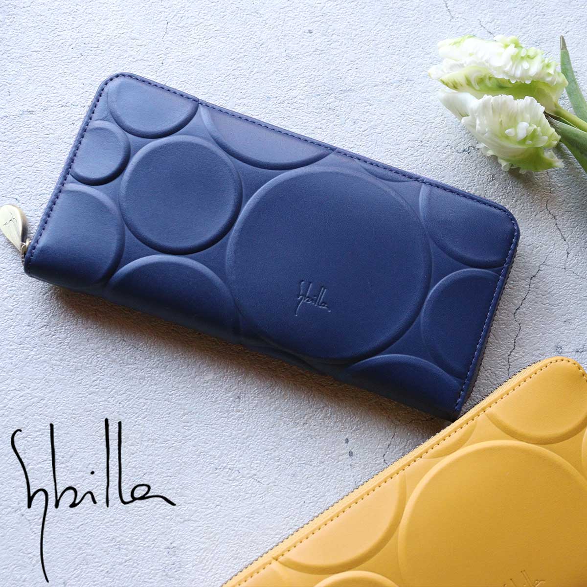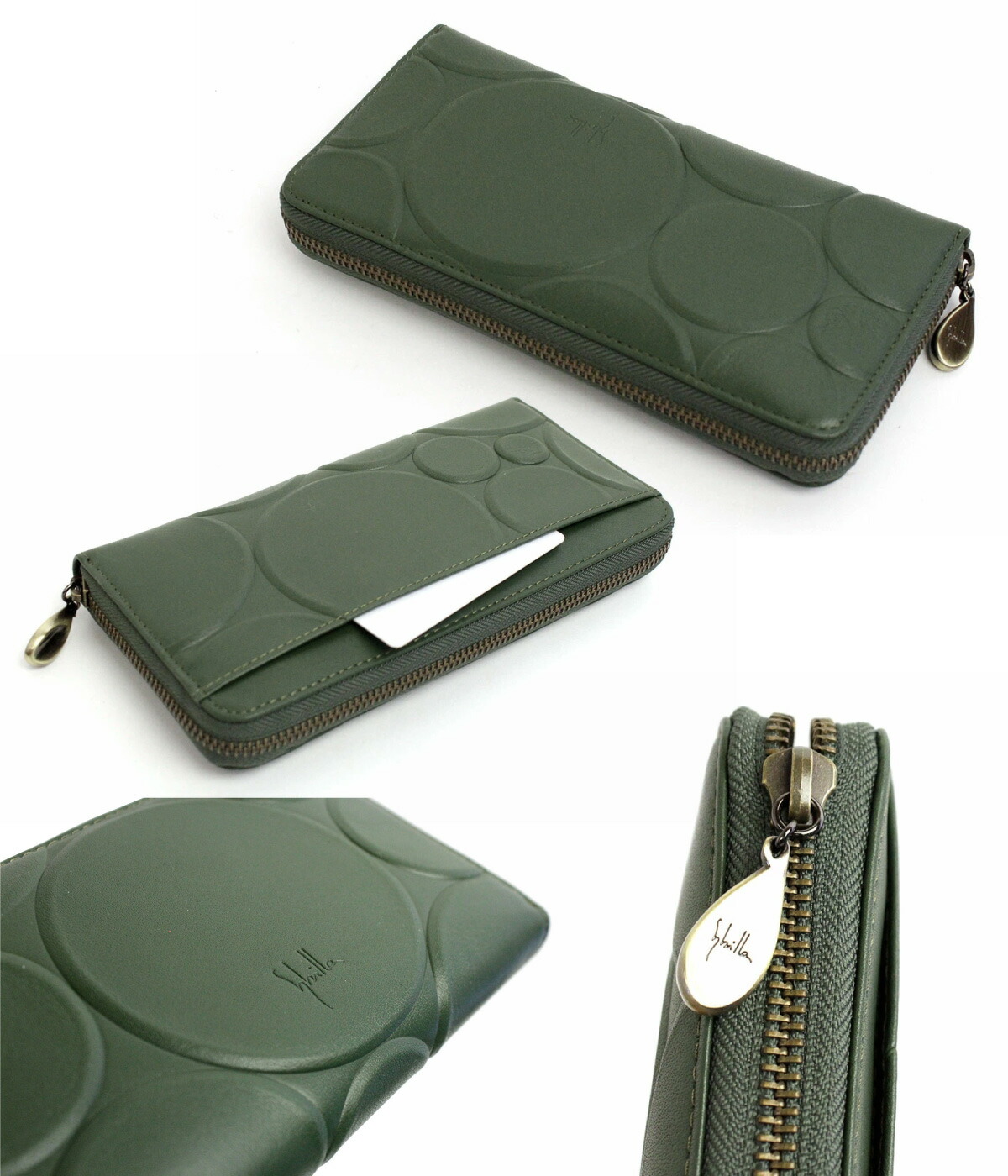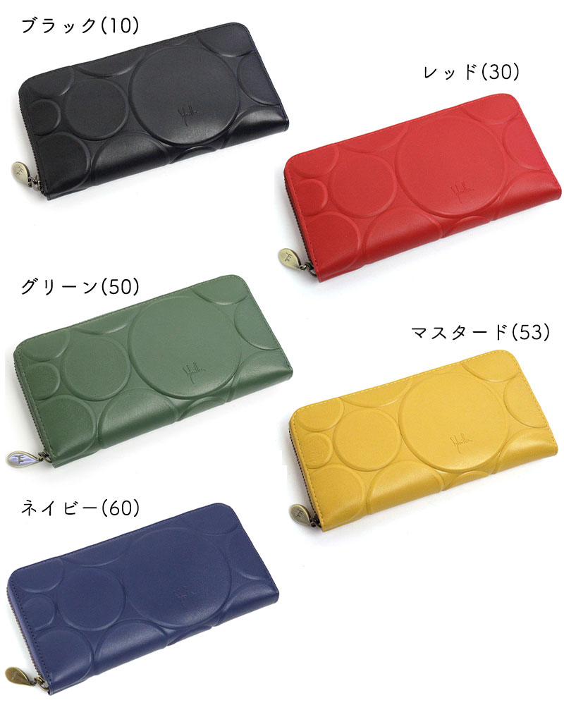 牛革に大小様々なサイズの円を大胆に型押しし、ぷっくりとした凹凸が楽しめるシリーズです。新たにデザインしたロゴ入りのオリジナル引き手もお財布の特別感をより一層引き立てます。