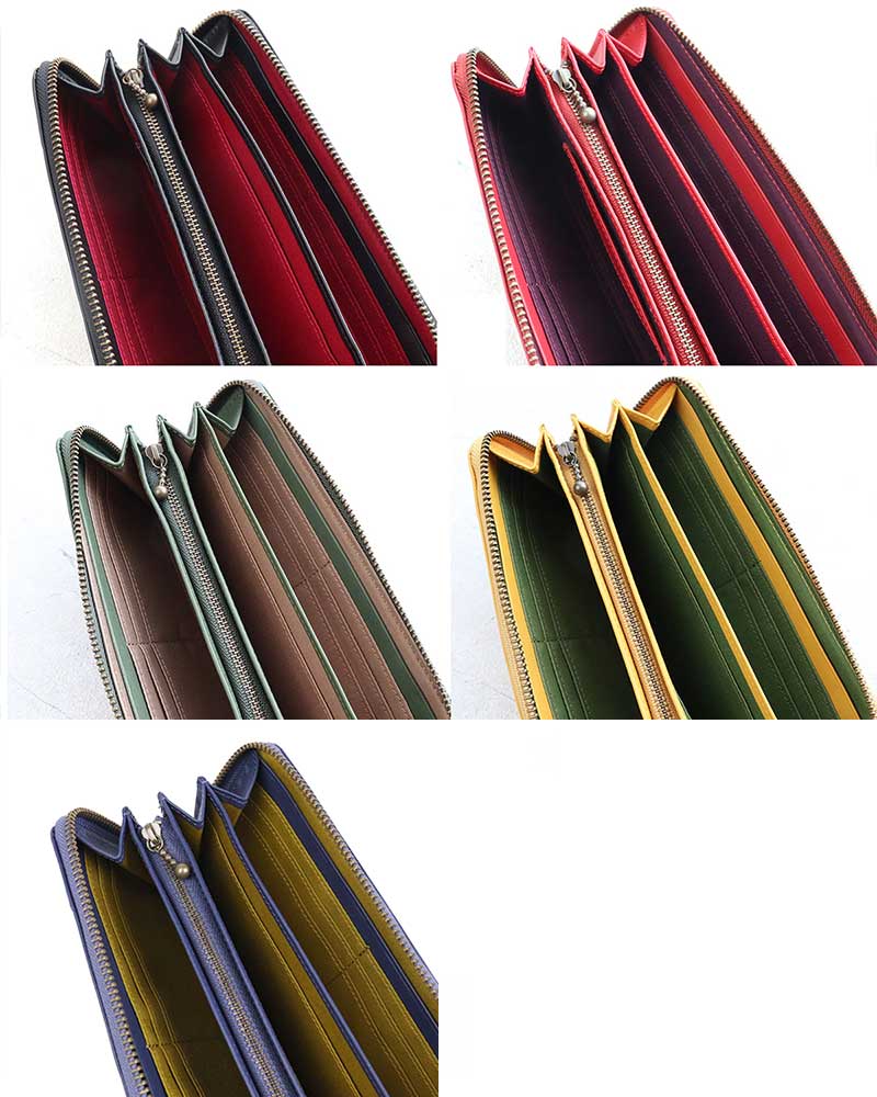 カードが19枚収納できる大容量の長財布です。ジッパー開閉なのでバッグの中でお財布が開いてしまうこともなく安心。内部は蛇腹の3層で大きなフリーポケットも充実しているのでレシートやチケットなども整頓して収納できます。小銭入れはL字ジッパー開閉。中は2層になっていてたっぷり収納出来ます。ジッパーの引手がアクセントになったデザインです。