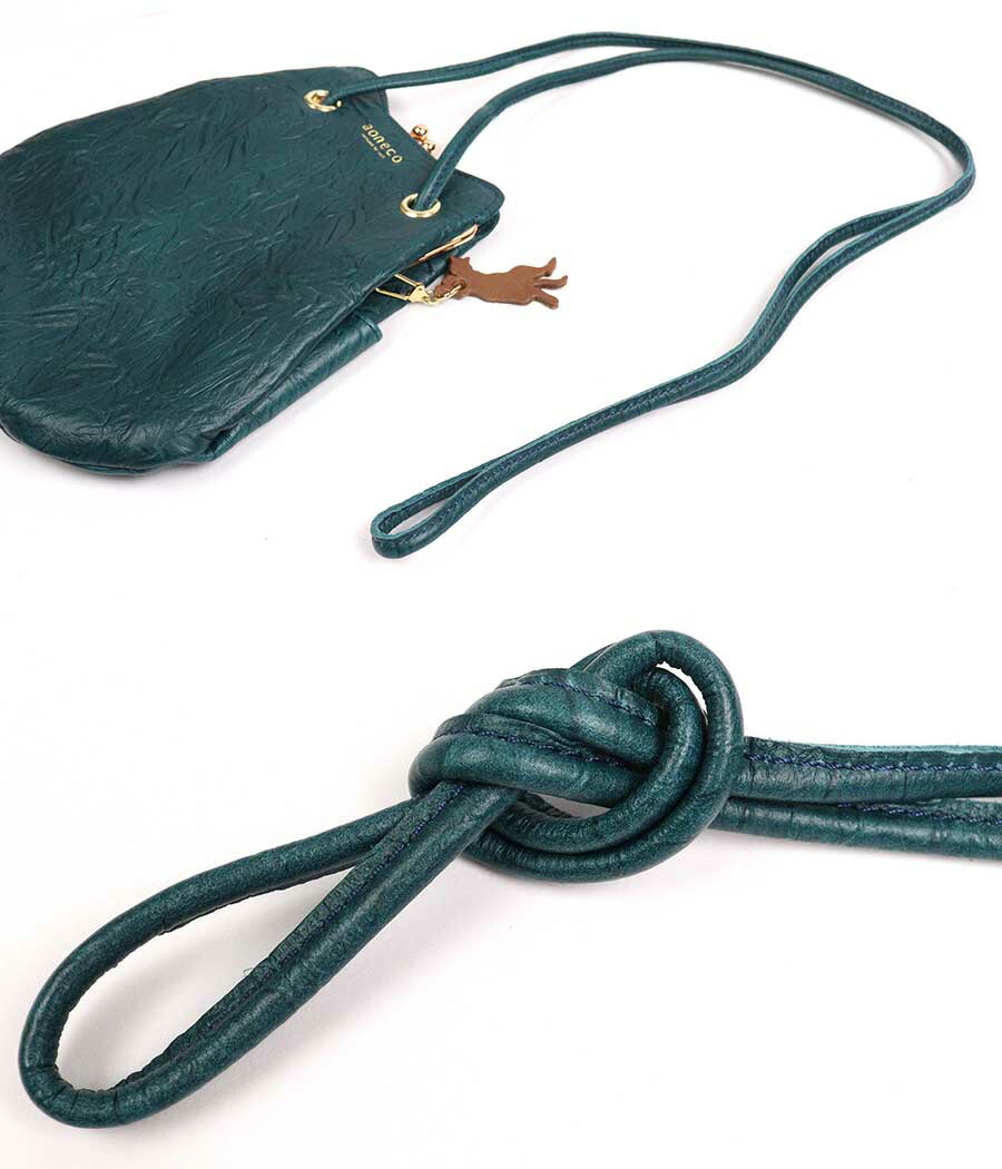 ショルダー紐は約138cm。お好きな長さのところで結ぶことで紐の調節が可能です。ショルダーには紐芯が入っており上からバッグと同じ革を巻き仕立てられ、耐久性とデザインの統一性も考えられています。