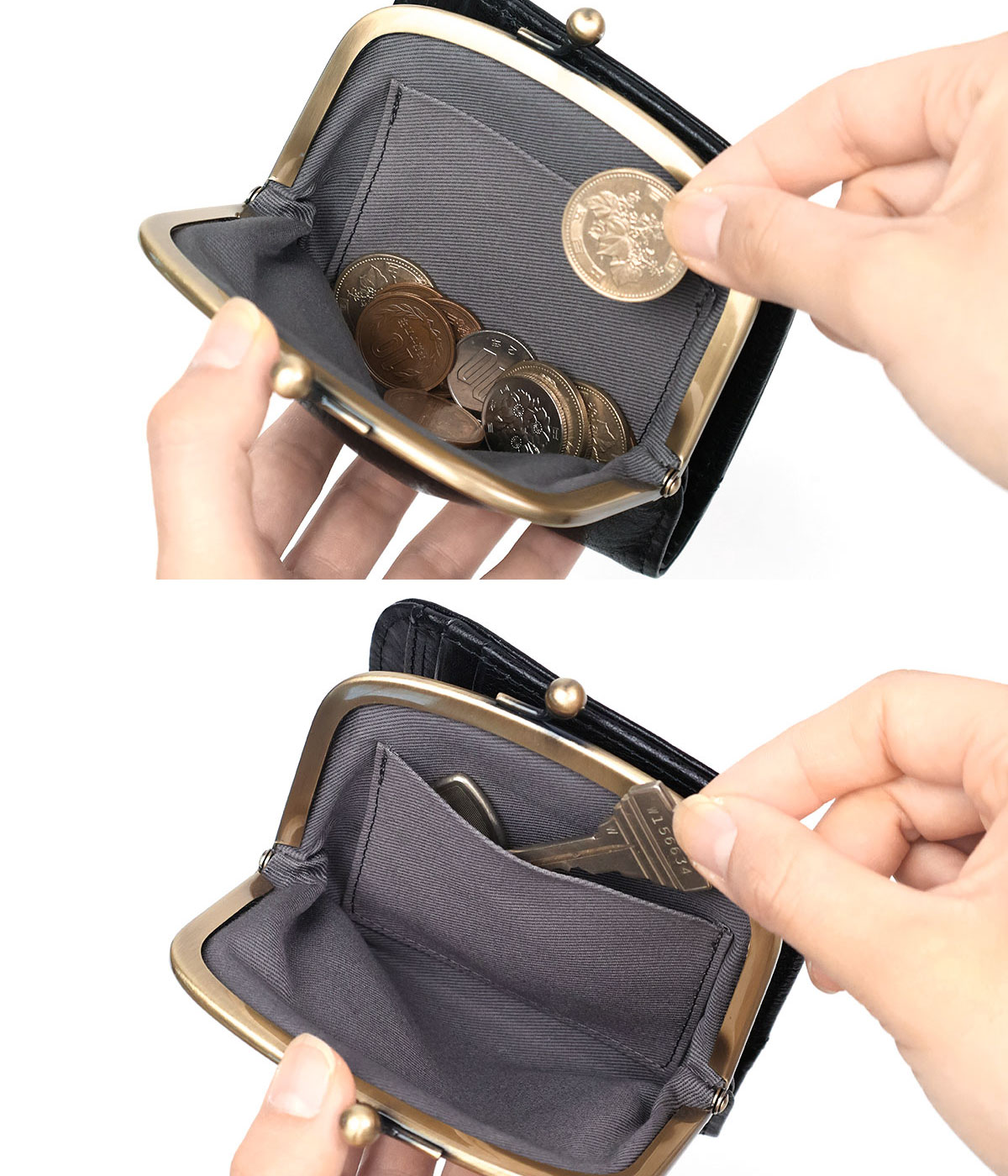 小銭入れはがま口開閉。パチンッと心地よい音を奏でます。
