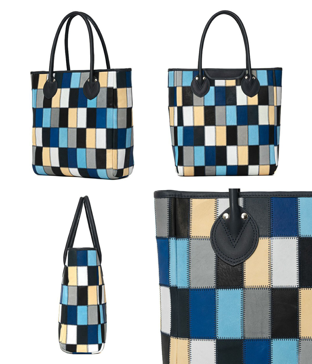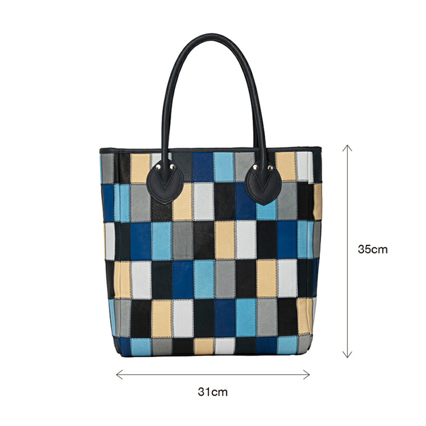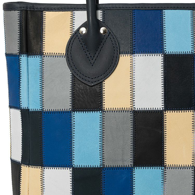 ブルーをメインとした7色の残革を使った配色を採用。カラフルな印象は残しながらも、トーンを揃えることで落ち着きも感じるカラーリングに。