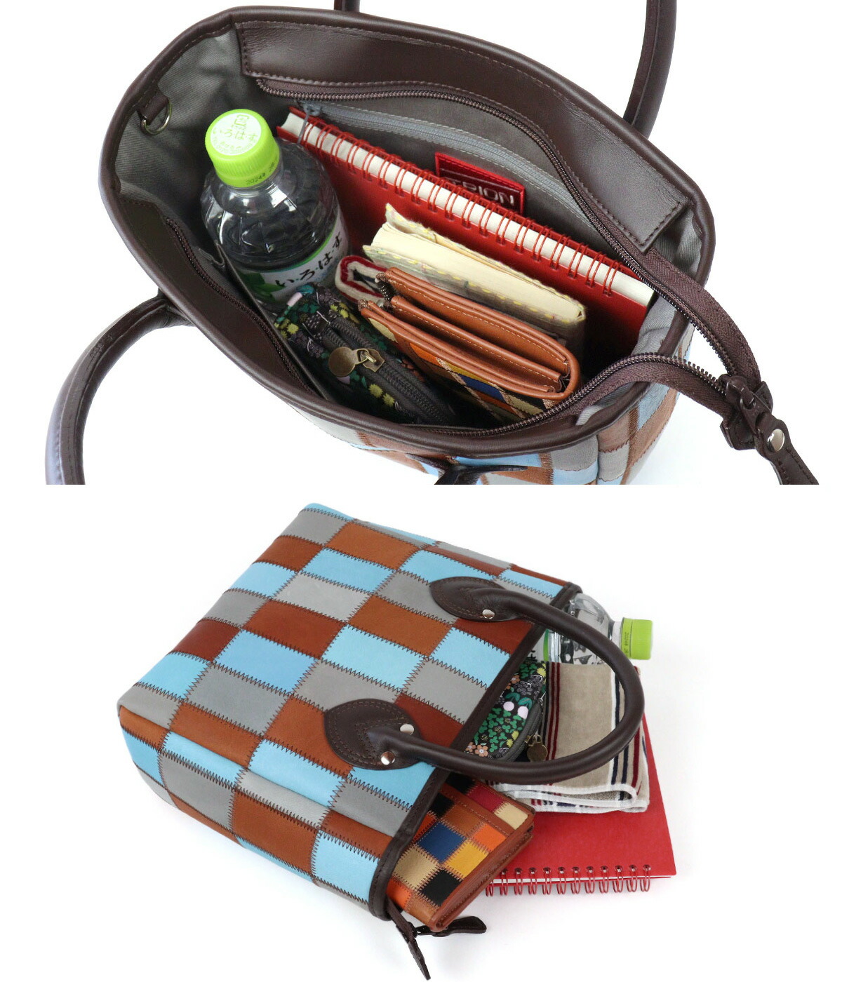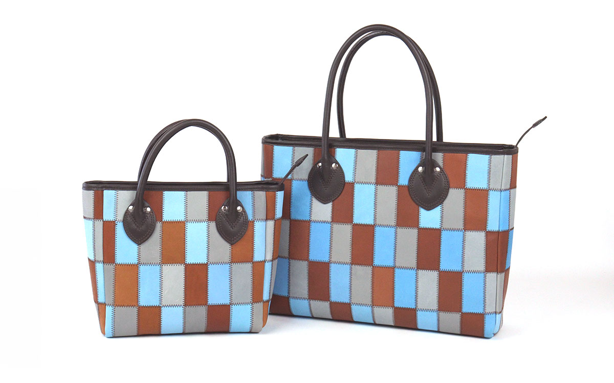 グローブ生産の際に生まれた残革をステッチで繋ぎ合わせることで新たな価値として再生する。ものづくりの原点を見つめる視点と柔軟な発想が融合して生まれた、起源を引き継ぐラインナップ。本来のトートバッグらしく、底鋲はありません。
