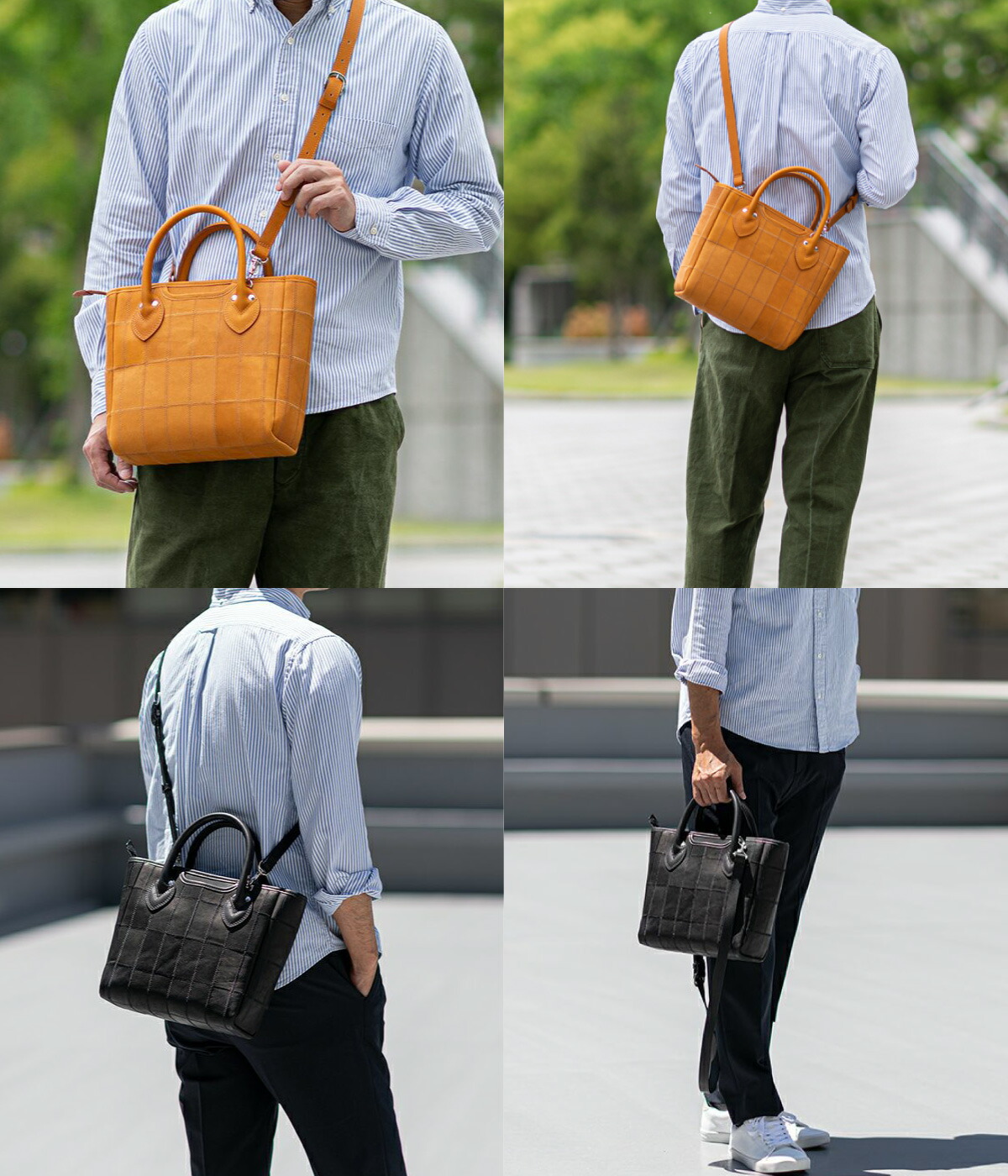 気軽に使えるコンパクトトートに、ショルダータイプが登場。着脱式のショルダーストラップで2Way仕様に。シーンに合わせてトート・ショルダーとお使い頂けます。