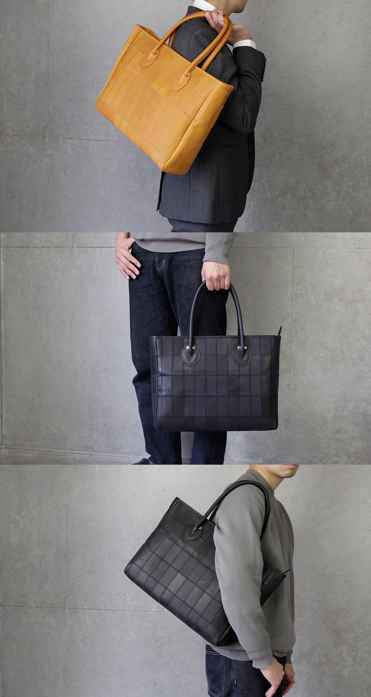 パネルレザーの魅力溢れる、トライオンのバッグの元祖であるクラシックなラインナップ。