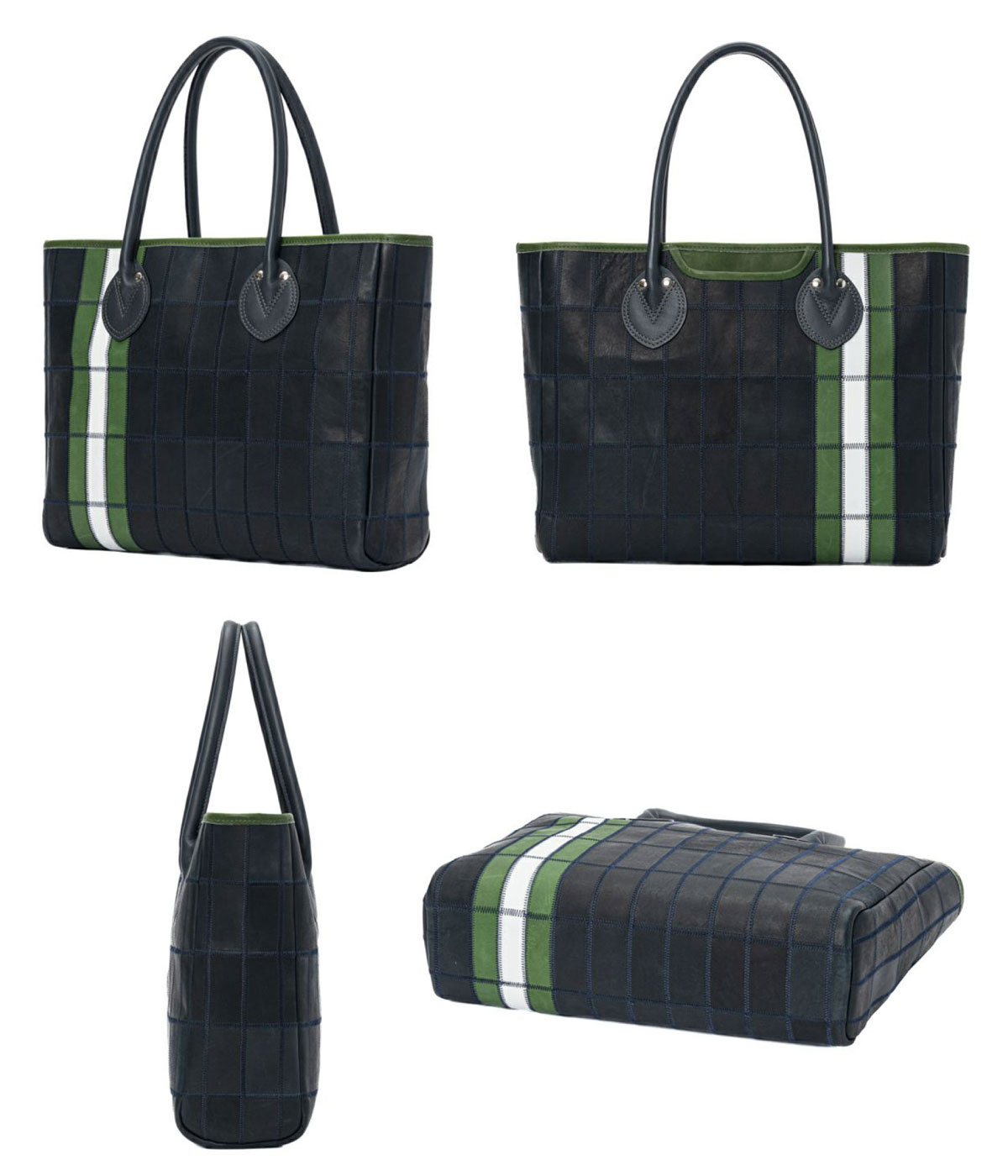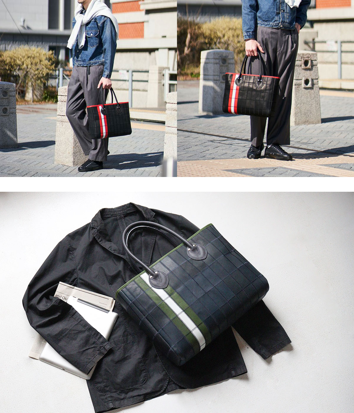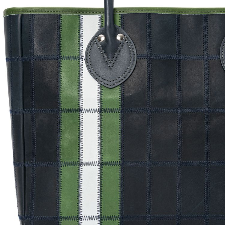 コーディネートのアクセントになるラインが特徴の本革トートが数量限定で登場。プロ仕様のグローブにも使われる、丈夫で良質なグラブレザーを一枚一枚丁寧に繋ぎ合わせた技術で、世界にひとつの表情が楽しめます。マルチカラーのような楽しさがありつつビジネスでも使いやすい落ち着きがあるのがポイントです。