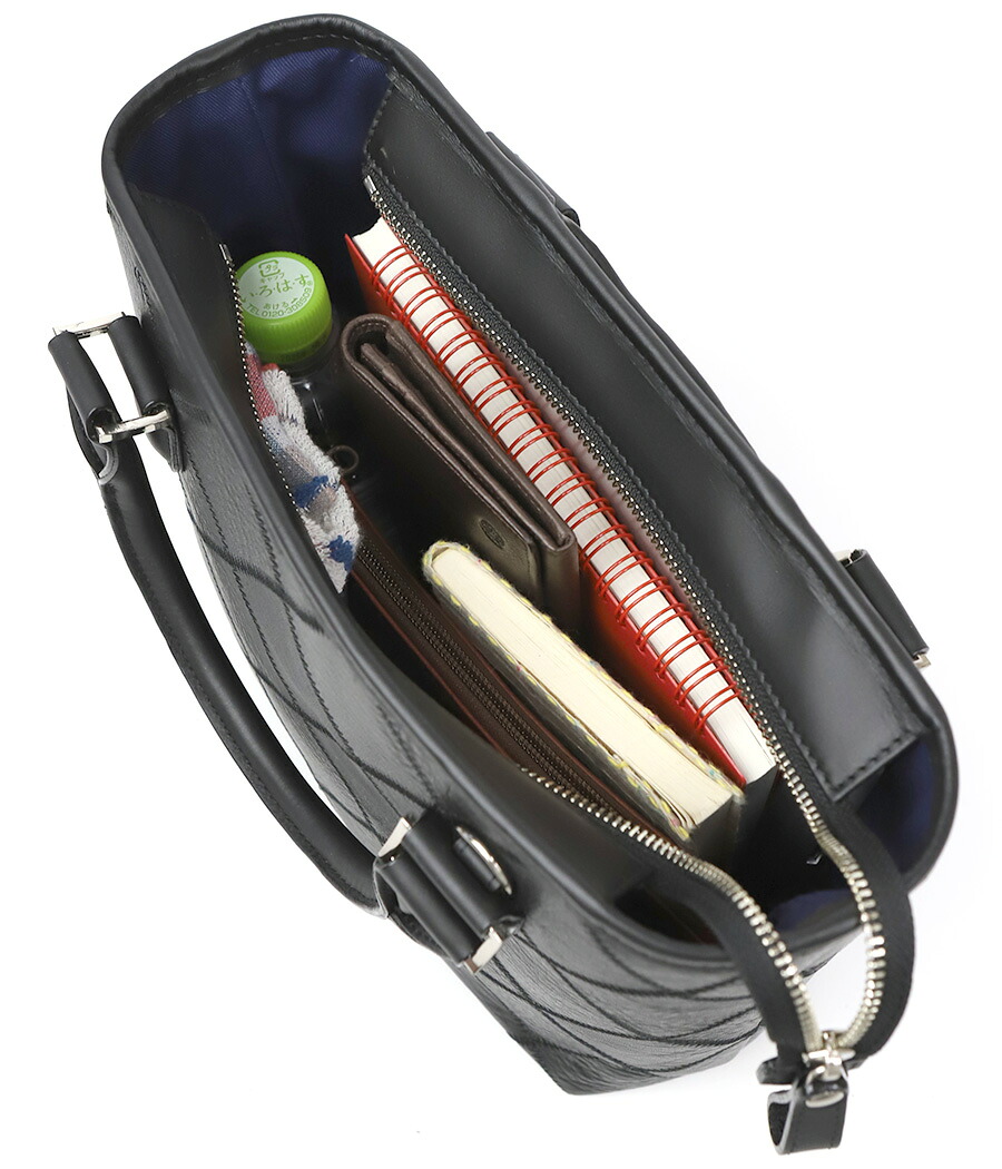 コンパクトなルックスながらマチが9cmあり、手回り品に加え、500mlのペットボトルもぴったり収まる、使いやすいサイズ感。必要な物は全て収まります。