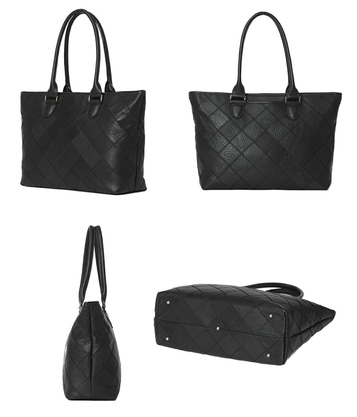 正方形にカットした1枚1枚凹凸の異なるシボ革(タンブルレザー)の組み合わせで、1点ずつ表情の異なる他にはないバッグに。