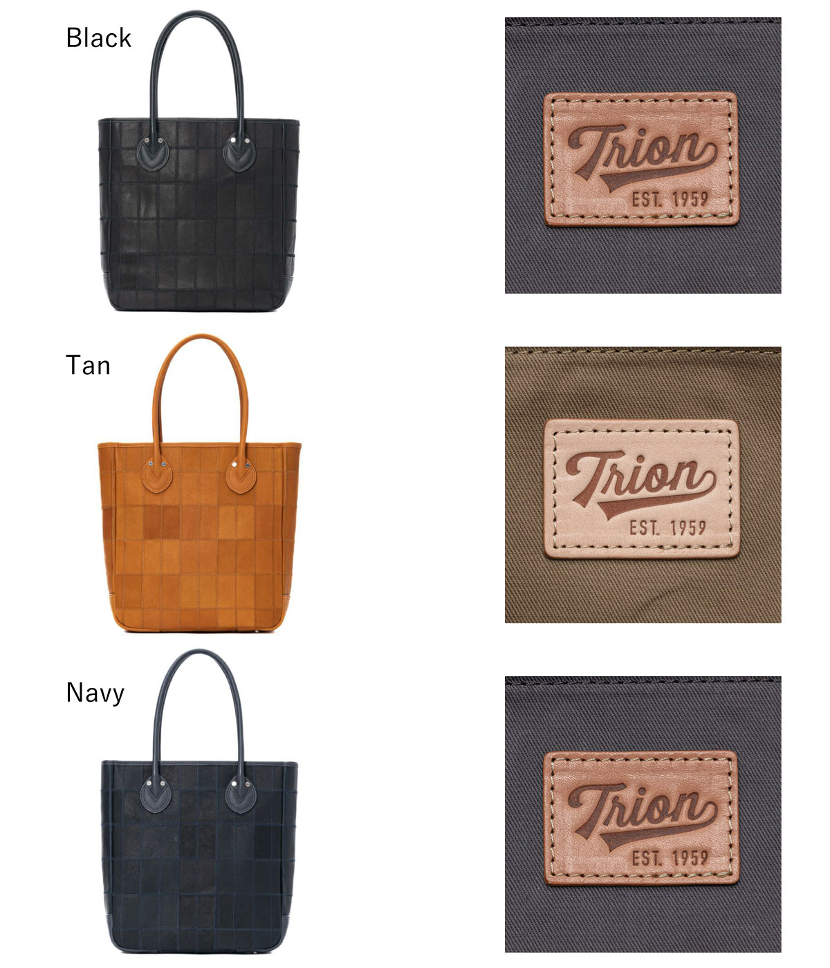 ベースボールグラブやバッグ製造時の綺麗で良質な端材を選別し繋ぎ合わせることで、新たな素材として再生させました。廃棄されそうな材料を使って環境保全にも貢献している(TRION独自の縫製技術を活かした)素材です。