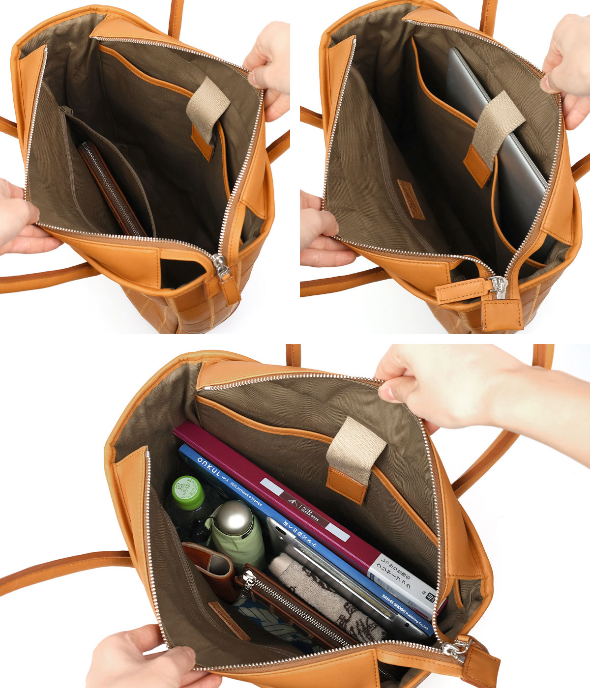 メイン収納にはA4サイズも余裕に収まります。お弁当など幅があるものも持ち運べちゃいます。