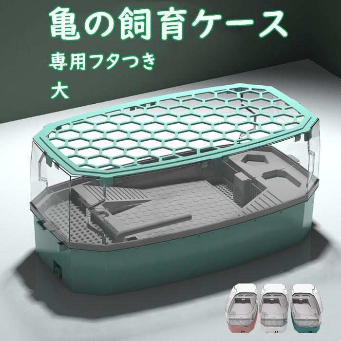 亀の水槽 飼育ケース タートルタンク 大きい カメの水槽 水循環 カメの飼育ケース 日向ぼっこ台 エサ皿 脱出防止フェンス 蓋つき ポンプ 傾斜斜め 掃除簡単