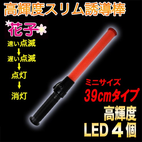 作業品・安全保安グッズでお馴染みのミズケイ社から新しい誘導棒が登場しました!誘導棒「花子」は全長390mmのミニサイズで登場。赤LEDが4個搭載されており「 速い点滅→遅い点滅→点灯→消灯」の4段階切替式ですので遠距離での相互合図にとても便利です。高輝度のLED使用している為、暗闇の中でとても目立ちます!