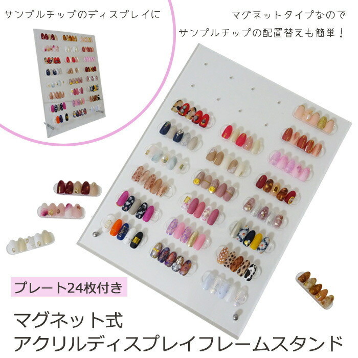 【宅配便配送のみ】マグネット式 アクリルディスプレイフレームスタンド(チップ用アクリルプレート24枚付き)透明 磁石タイプ ネイル展示