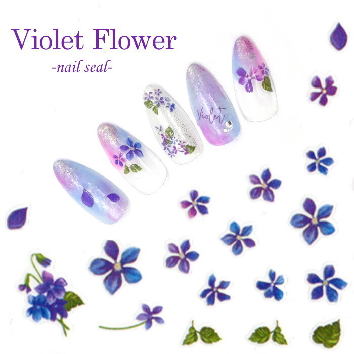極薄ネイルシール バイオレット フラワー 【HANYI-394】ネイルステッカー すみれ 菫 花 水彩 押し花