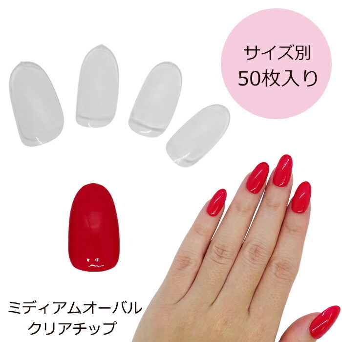 サイズ別 約50枚入り ネイル チップ クリア 【ミディアム オーバル】3番 4番 5番 6番 透明 ネイルチップ