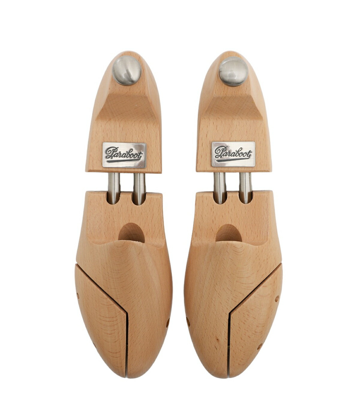 `Paraboot`純正のシューツリー。はきジワを伸ばし、型崩れを防ぐ保管必需品です。頑丈で吸湿性に優れたブナ材を採用し、`3ブロック構成のバネ式`でフィット性と扱いやすさを両立。サイズは`UK6/UK7/UK8/UK9`の同サイズ相当シューズに対応し、ハーフサイズには下のサイズを推奨。全長・幅に可動域があり、靴内部に適切なテンションを与えて形を維持します。天然素材のため個体差が生じる場合があります。画像は環境により色差あり。