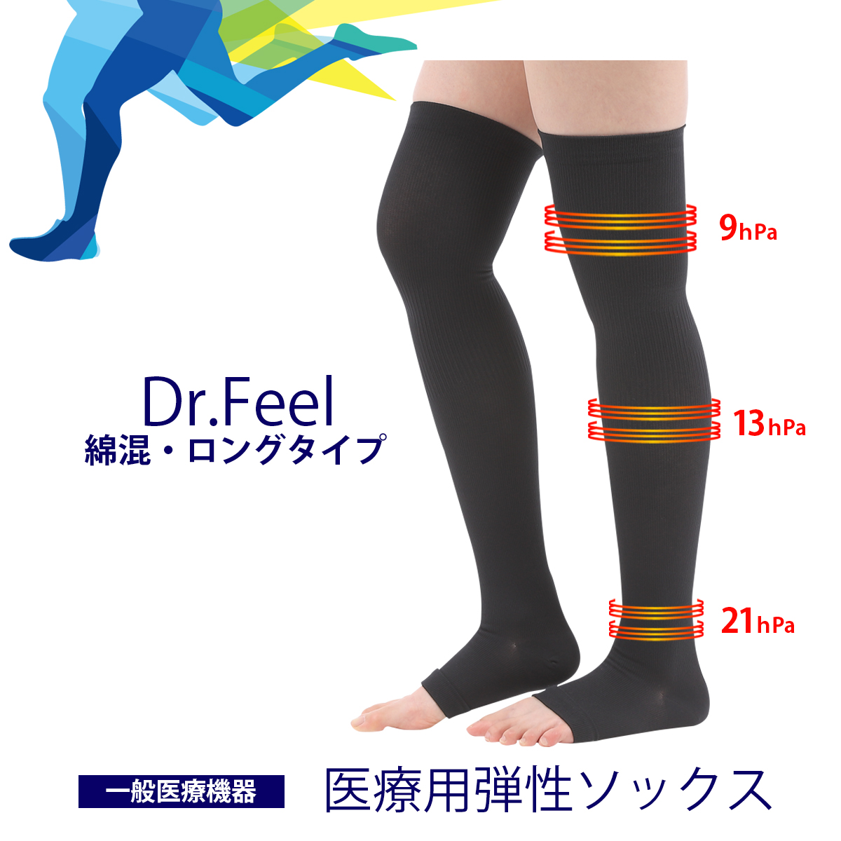 | ■商品ページ | Dr.Feel 医療用弾性ソックス Day -ナイロン素材使用- | Dr.Feel 医療用弾性ソックス Night -綿混素材使用- | 医師監修 Dr.Feel 膝・太もも用サポーター(強圧) |