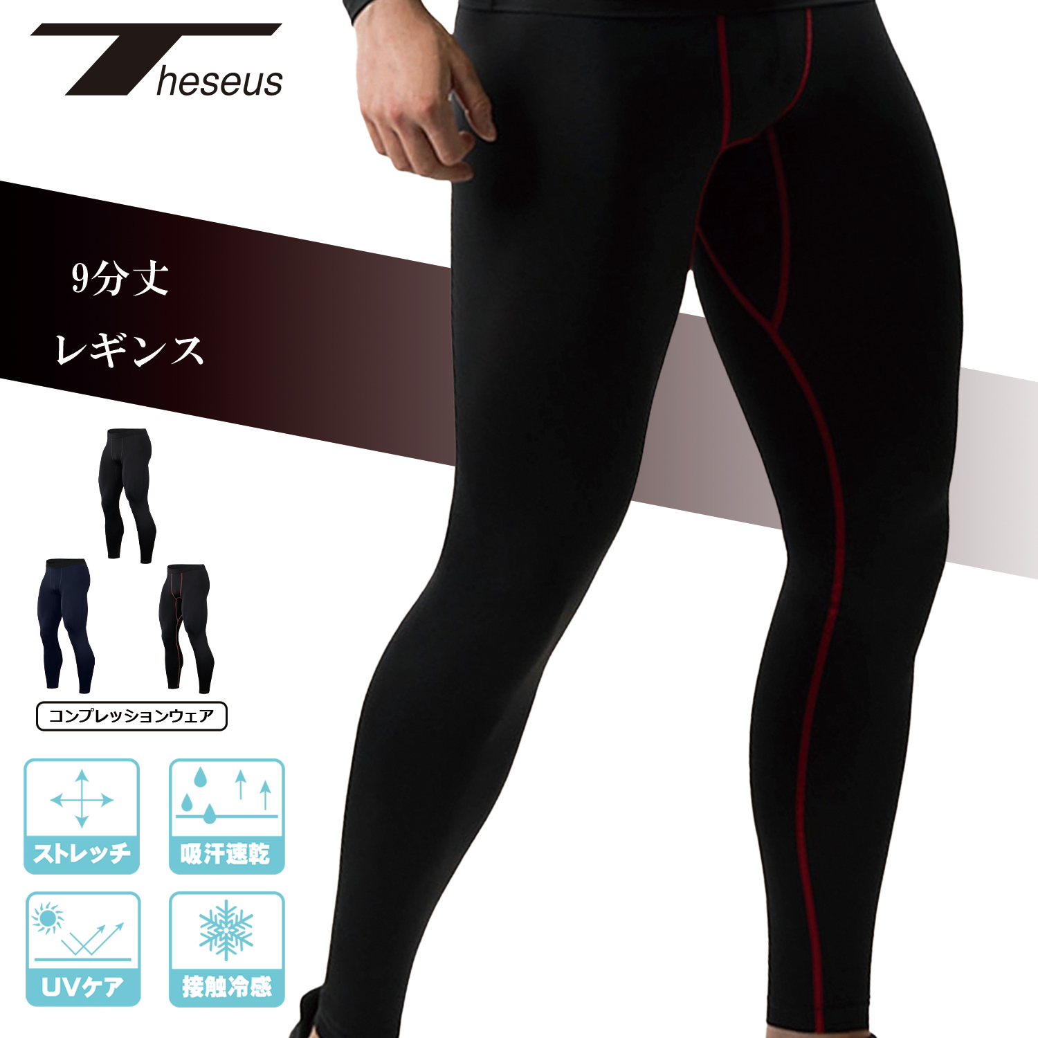 ●スーパードライ、アイス生地を採用したスリムフイットロングタイツ。