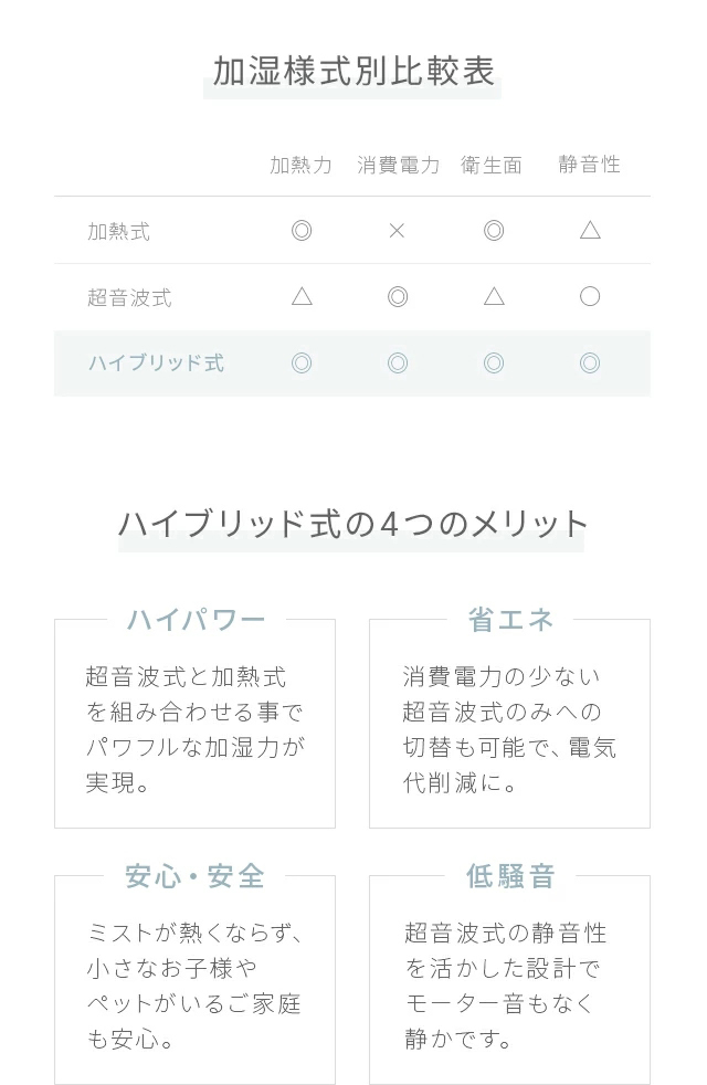 良いとこ取りのハイブリット式と超微細ミスト