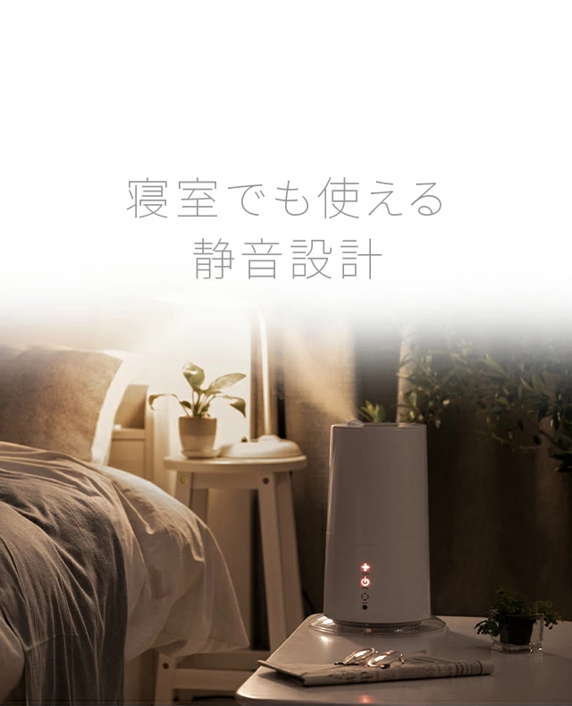 動作音は加湿量弱で約18dbときわめて静か、作業や睡眠を妨げません。