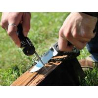 ストレート用のタングステンカーバイドとファインセラミックロット、ガットフックに最適な波刃用のダイヤモンドテーパードとセラミックシャープナーの4つが1つになった万能シャープナーです。ストレート用のシャープナーは刃厚 約4mmまで使用可能。ランヤードホールが配置され紐やチェーン等を通せます。